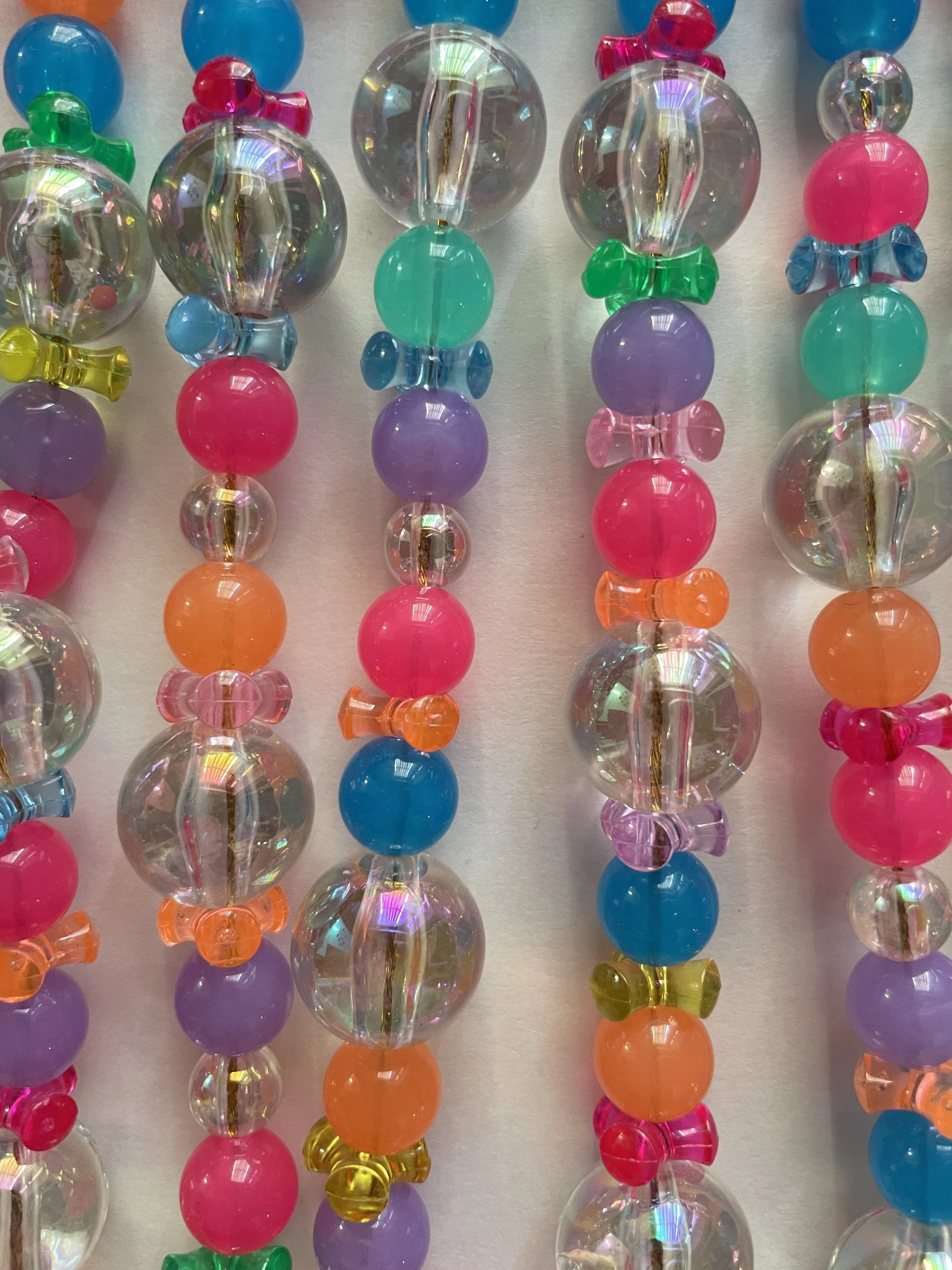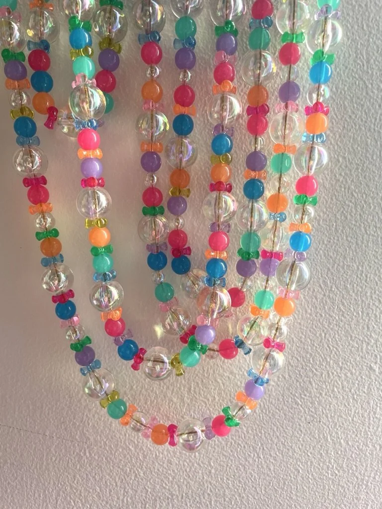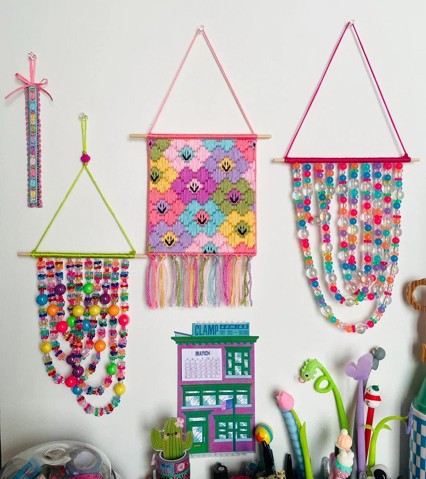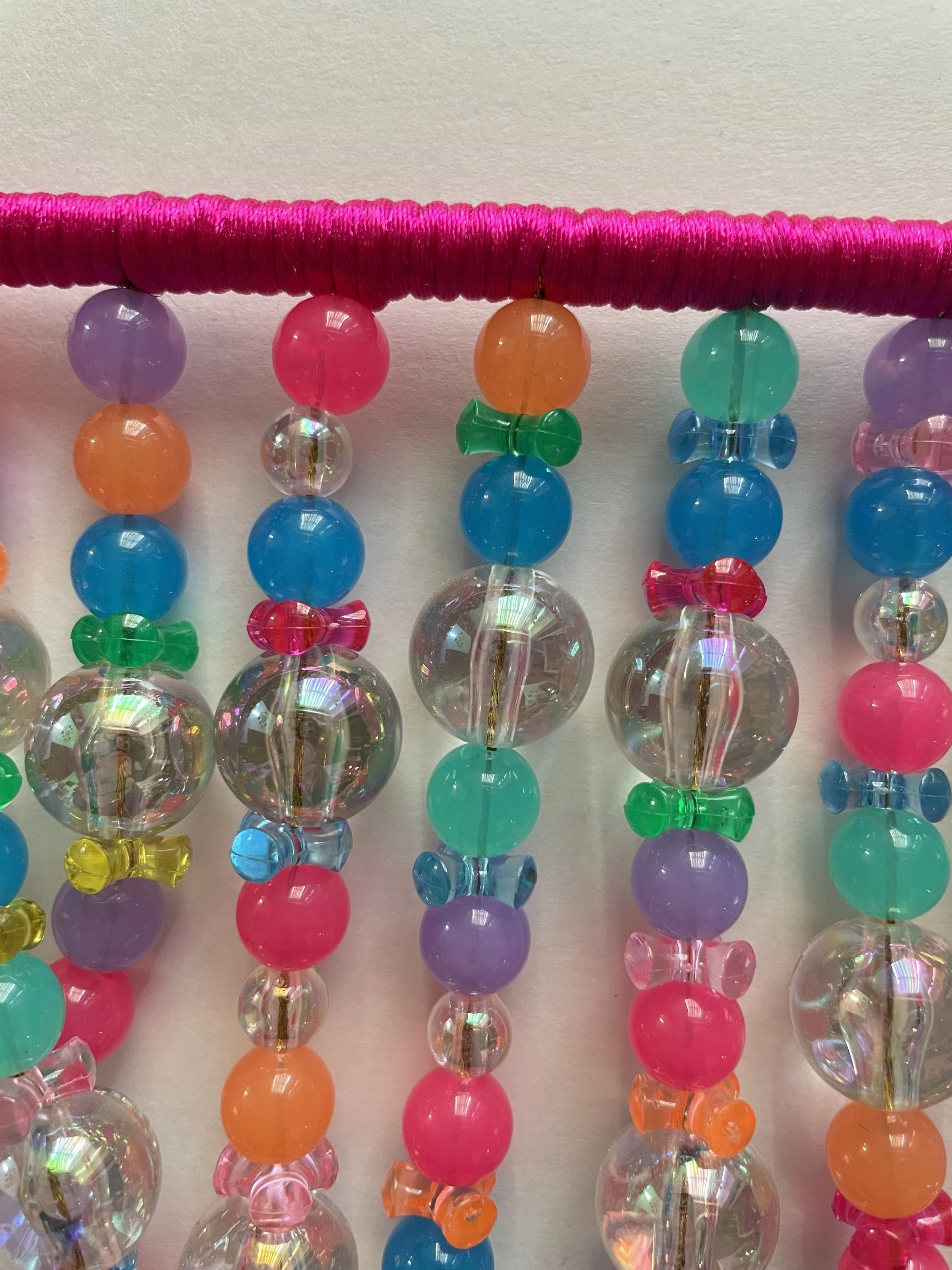 hand-beaded hanging with acrylic beads with nylon cord and bamboo dowel